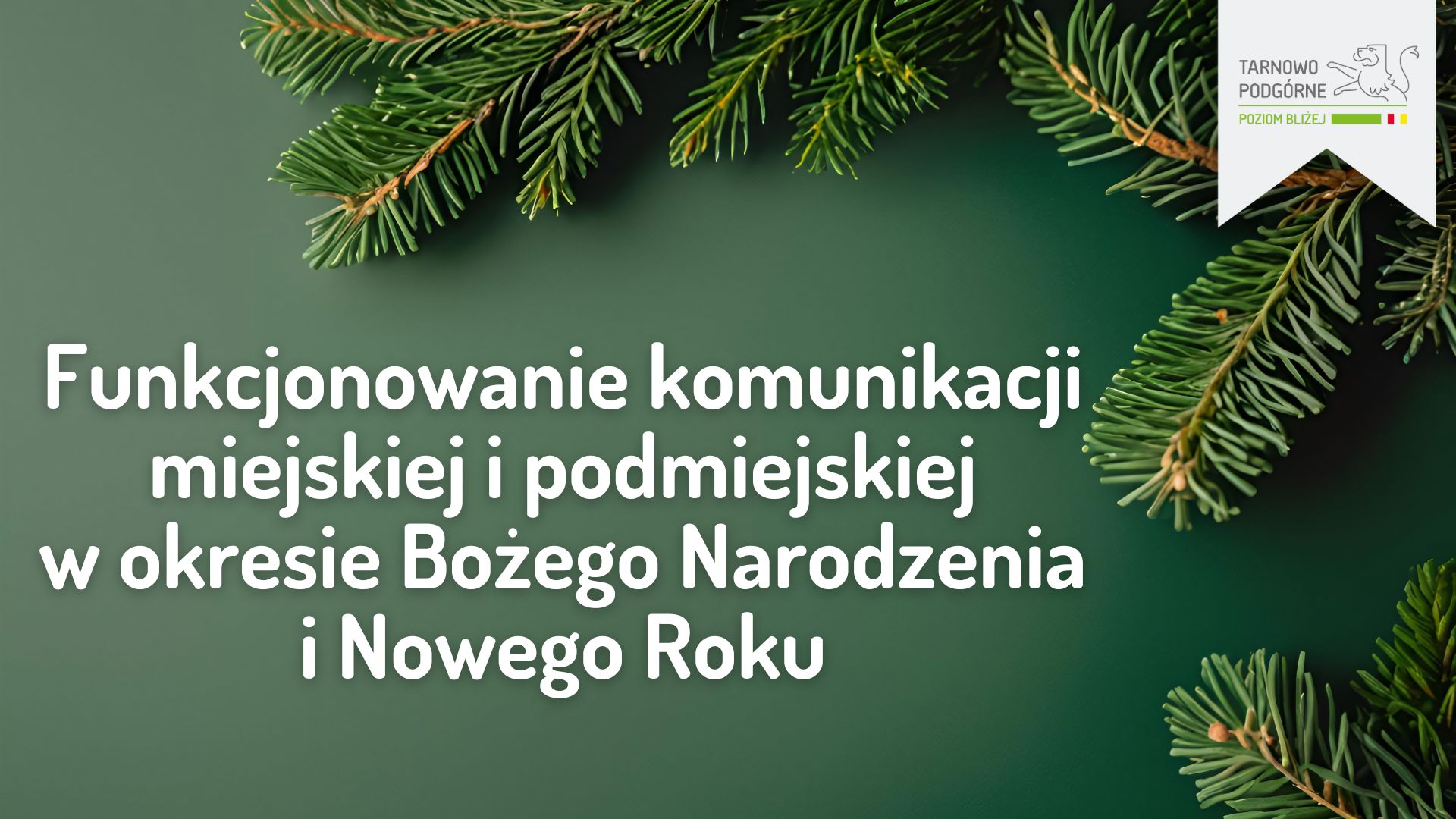 Funkcjonowanie komunikacji miejskiej i podmiejskiej w okresie Bożego Narodzenia i Nowego Roku tj. w dniach 22 grudnia 2025 – 6 stycznia 2026.