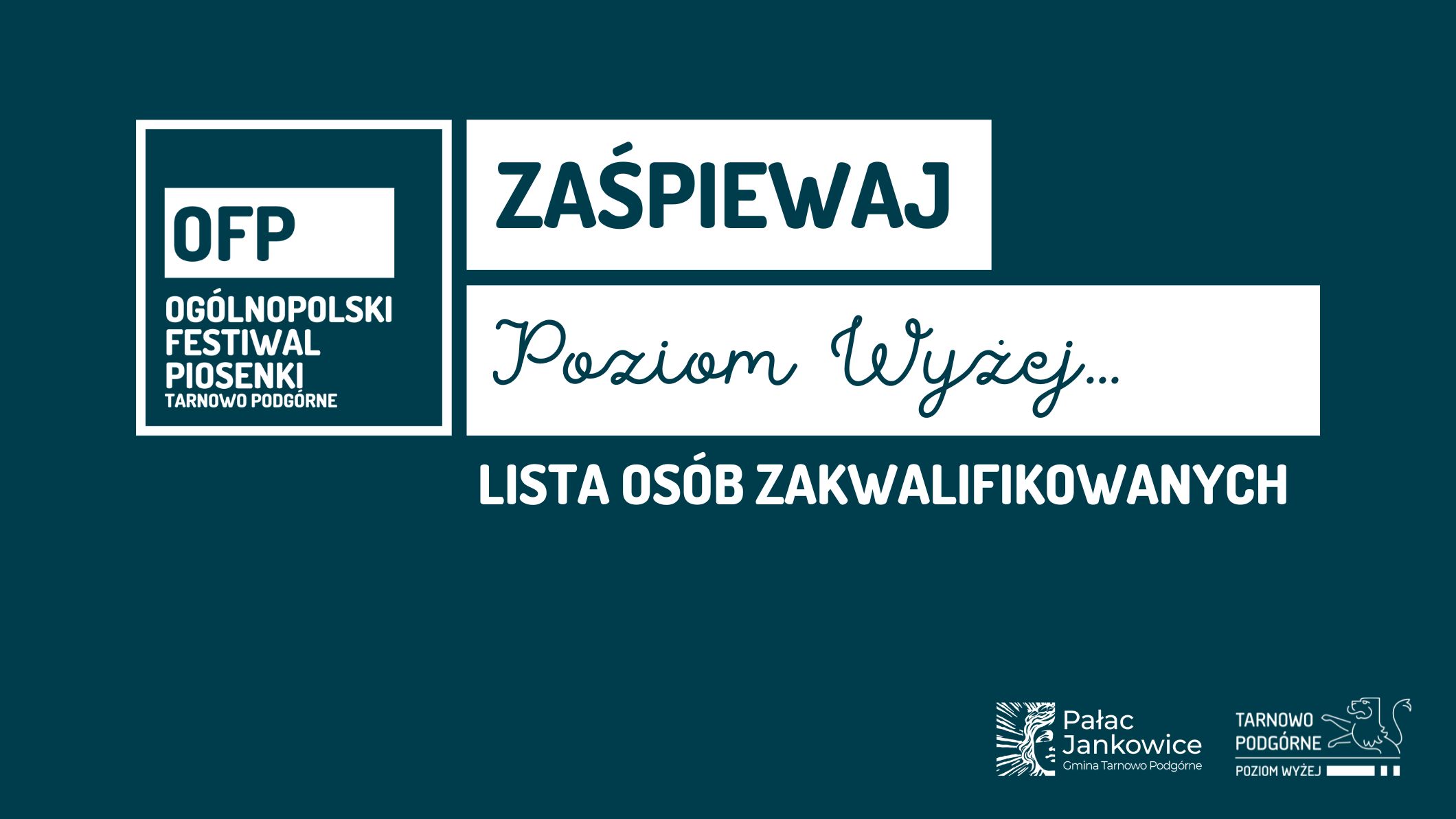 Znamy już osoby zakwalifikowane do udziału w drugiej edycji Ogólnopolskiego Festiwalu Piosenki Tarnowo Podgórne, który odbędzie się w dniach 26-28 sierpnia w Pałacu Jankowice w Gminie Tarnowo Podgórne. Tym razem wpłynęły do nas aż 164 zgłoszenia z całej Polski.