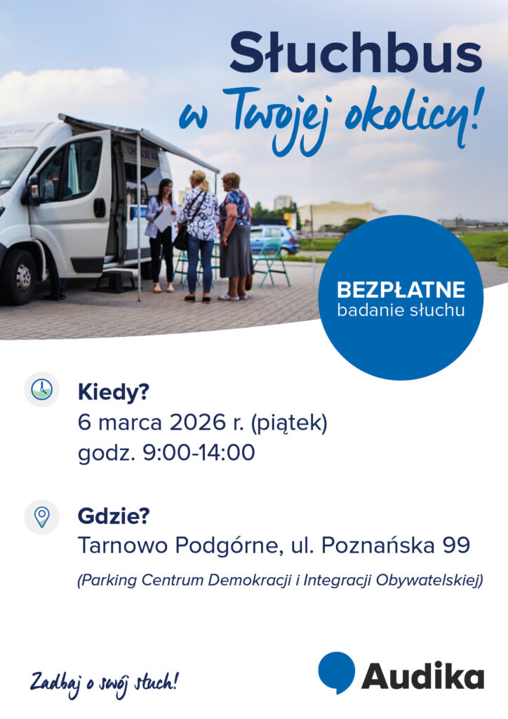 Zapraszamy do słuchobusu 6 marca w godz. 9:00-14:00 na parkingu Centrum Demokracji i Integracji Obywatelskiej, ul. Poznańska 99 w Tarnowie Podgórnym.